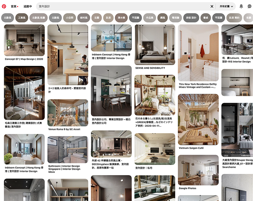 (搜集網站: Pinterest、Behance、100室內設計、Decomypalce、google搜尋關鍵字)