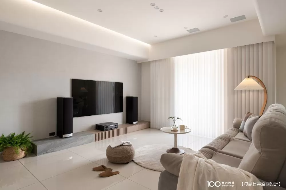 此案的溝通來往時間長了點,但最後打造出的風格我們都很喜歡,特別是客廳電視牆櫃和視廳設備是媽媽的重點舞台(笑),我們在柔和風格中添加了點精緻元素,希望親朋好友拜訪時能看到亮點,一起享受這個家的溫馨舒適、還有開心的歡唱時光。