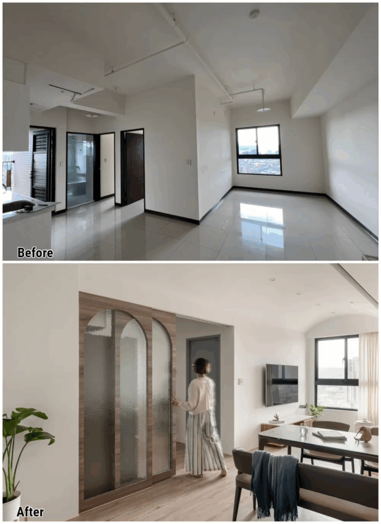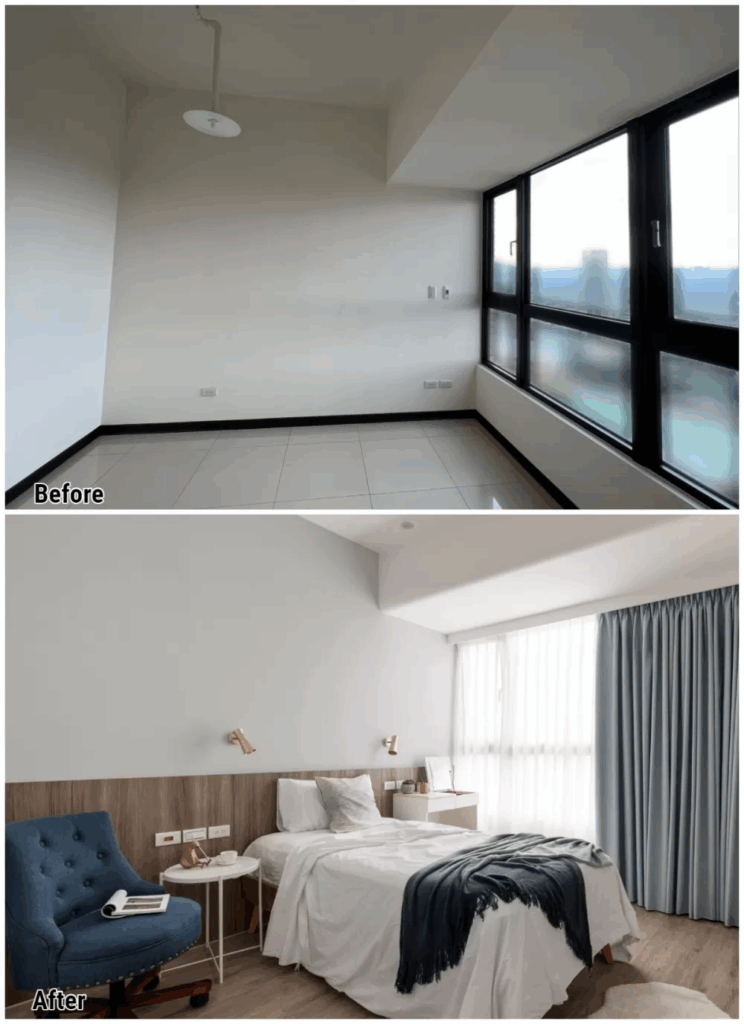郭設計師談到,遇到預算較吃緊的裝潢,每分錢都要花在刀口上,會先從房子的「體質」評估。包括格局是否舒適不緊繃、動線行進是否順暢不壓迫、有沒有過狹窄的房間走道等,這些硬體上的問題一一調整好,其它部分都可以透過家具、替代建材、留白等方式精省,比起空間風格、顏值,格局動線才真正影響生活的舒適、便利與否,也是裝潢時最需要關注的環節!